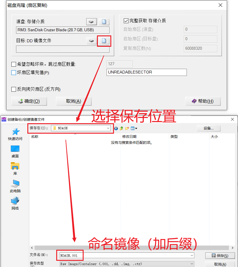 2.直接選擇保存的文件夾路徑、并命名鏡像(需要加后綴)