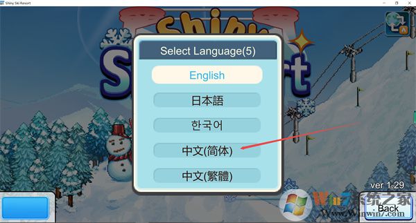 4、你可以將游戲語言修改為中文,完成調(diào)節(jié)后點(diǎn)擊后退到首頁;