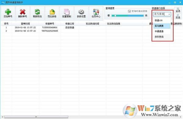 2、首先你可以在軟件右上角選擇快遞查詢的接口