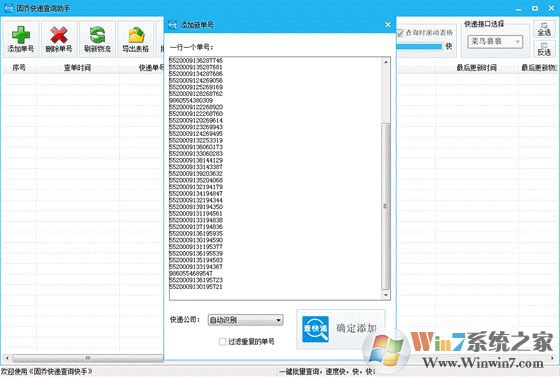 3、然后點(diǎn)擊【添加單號(hào)】來(lái)添加要查詢的快遞單,軟件自動(dòng)識(shí)別快遞單