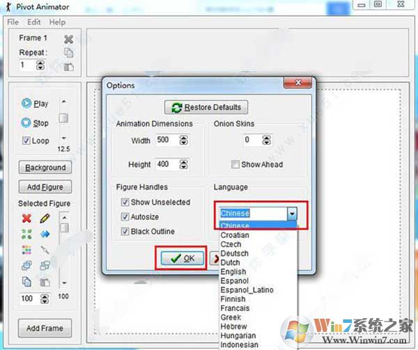 1、運(yùn)行pivot animator,進(jìn)入如下的選擇語(yǔ)言界面,選擇【Chinese】的中文語(yǔ)言,點(diǎn)擊【OK】。
