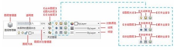T20界面中提供了全新的圖層管理器,依然將天正圖層標(biāo)準(zhǔn)預(yù)設(shè)進(jìn)圖層管理器中,并以圖層組的方式進(jìn)行分類,是圖層管理更加清晰,操作更加方便。選項(xiàng)版中的【透明條】可將圖中鎖定的圖層設(shè)置透明顯示,以透明度來調(diào)節(jié)鎖定圖層的亮度。