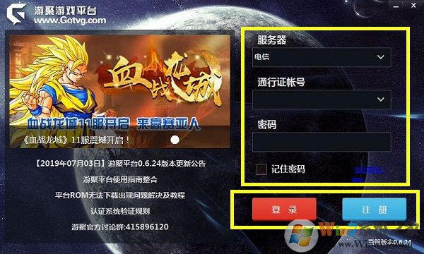 1、更新速度過慢可下載最新綠色版,然后在原平臺(tái)目錄下覆蓋解壓縮即可。打開文件夾中的啟動(dòng)程序進(jìn)行登錄,輸入通行證及密碼即可,無賬號(hào)可直接點(diǎn)擊右下方的“注冊(cè)”按鈕進(jìn)行注冊(cè)【注意】:綠色版的啟動(dòng)程序在bin文件夾下,或者點(diǎn)擊目錄下的“啟動(dòng)游聚游戲平臺(tái)。exe ”啟動(dòng)游聚。