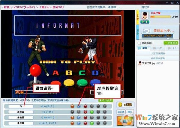 由于部分鍵盤不支持同時(shí)按下三個(gè)以上按鍵,因此有些復(fù)雜的招數(shù)無法使用,所以平臺(tái)設(shè)立了組合鍵設(shè)定功能;點(diǎn)擊設(shè)置界面左側(cè)“組合鍵”手圖標(biāo)可進(jìn)入組合鍵設(shè)置界面,組合鍵設(shè)置功能的使用方法是: