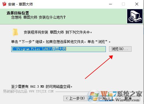 4、選擇目標(biāo)位置,一般默認(rèn)C盤,也可以點(diǎn)擊”瀏覽“,自定義路徑;