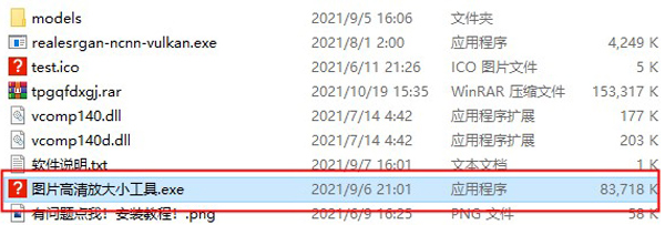 1、下載解壓后獲得軟件,雙擊“圖片高清放大小工具.exe”即可直接運(yùn)行,
