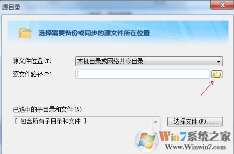 3、選擇源文件夾,在源目錄界面,點擊 原文件路徑 后面的文件夾按鈕;