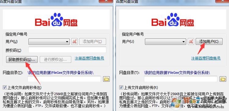 6、授權成功,由于百度的限制,同步盤只能設置在“我的應用數據”文件夾下,(勾選上傳文件啟用秒傳)