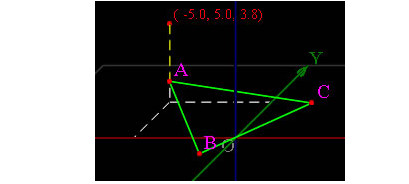 再在點(diǎn)A上按下鼠標(biāo),取得它的坐標(biāo)X、Y值,不按Ctrl鍵向上拖動(dòng),使其坐標(biāo)為(-5。0,5。0,3。8),松開(kāi)鼠標(biāo)得頂點(diǎn)V,如圖。