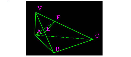 3、移動(dòng)鼠標(biāo)可得虛線標(biāo)示的棱臺(tái),改變與V點(diǎn)距離,可見(jiàn)棱柱與棱錐。在V點(diǎn)附近單擊得三棱錐V-ABC。單擊A點(diǎn),在線段VB中點(diǎn)處單擊得線段AE,在線段VC上任意處單擊得線段EF(圖中F是三等分點(diǎn))?;攸c(diǎn)A單擊,得封閉面AEF,右擊鼠標(biāo),完成繪圖。