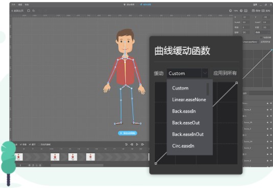 內(nèi)置多種常用緩動(dòng)函數(shù),還可以根據(jù)需求自定義緩動(dòng)函數(shù),輕松改變角色動(dòng)畫中骨骼旋轉(zhuǎn)和移動(dòng)等運(yùn)動(dòng)的變化快慢。