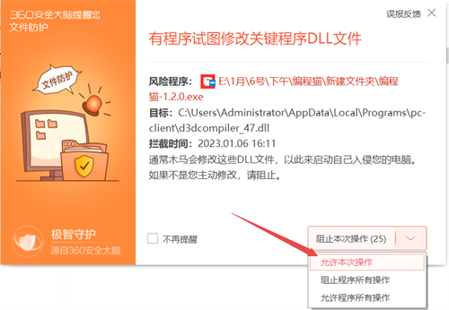 如果你的電腦安裝了360,出現(xiàn)了以下提示: