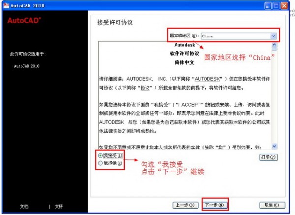 5第五步:CAD2010許可協(xié)議界面