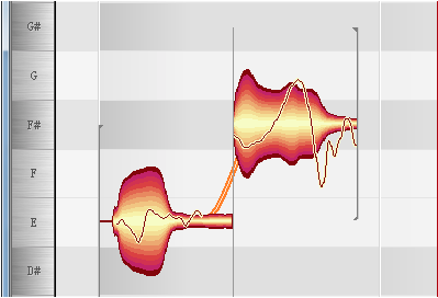 將每個(gè)音準(zhǔn)確的劃分出后,即可拖動(dòng)任意音到任意位置。因此,如果遇到?jīng)]唱準(zhǔn)的音,將其拖動(dòng)至正確的音高上即可。