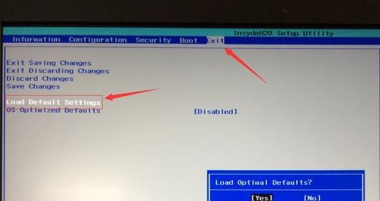 3、在選擇Load Default Settings回車加載設(shè)置,加載默認設(shè)置之后,部分機型需要先按F10保存重啟再按F2進入BIOS繼續(xù)下面的設(shè)置;