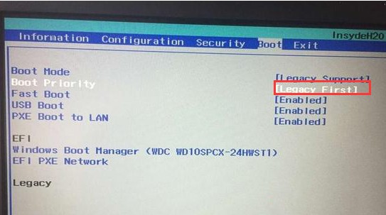 5、再把Boot Priority設(shè)置成Legacy First,按F10彈出窗口選擇yes回車;