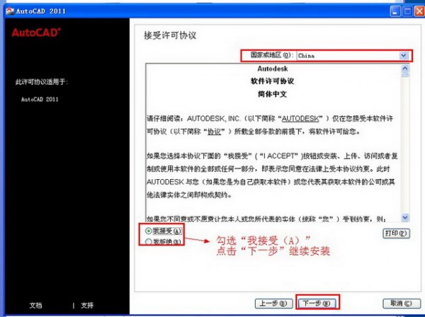 5第五步:進(jìn)入CAD2011協(xié)議界面