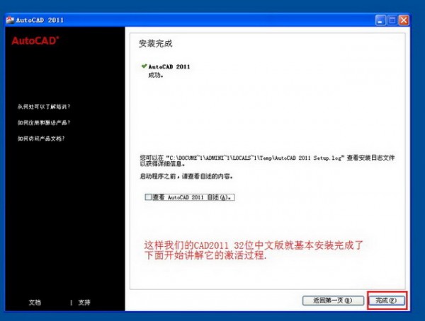 9第九步:CAD2011 32位中文版安裝完成(未激活)