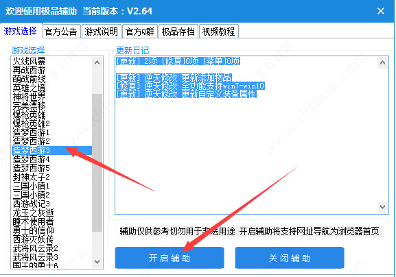 2、在彈出的界面中選擇造夢西游3后點(diǎn)擊進(jìn)入輔助;