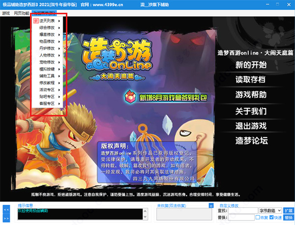 4、登錄游戲后點(diǎn)擊左上角的功能列表,選擇要修改的內(nèi)容;