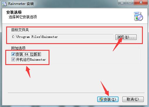 5、點擊“瀏覽”選擇目標文件夾的路徑,在附加選擇中可按用戶的需求自行選擇,最后點擊“安裝”;