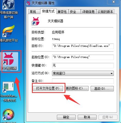 打開天天目錄下一個名為VBOX的文件夾,默認(rèn)路徑:D:/ttmnq(不知道天天目錄是在哪里的同學(xué)可以鼠標(biāo)右鍵點擊桌面上的天天模擬器圖標(biāo),選擇屬性來查看),如下圖所示: