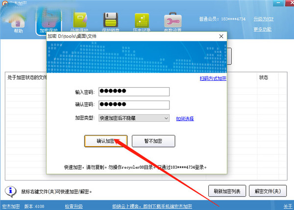 6、最后我們在設(shè)置好想要加密文件的密碼以及類型之后,點擊界面中的確認(rèn)加密這個功能按鈕就可以開始加密文件的操作了。