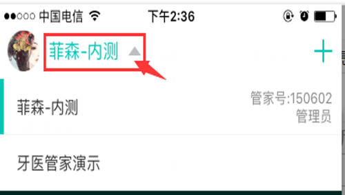 5、關(guān)聯(lián)好之后,可以顯示診所名稱,點擊頁面左上角的診所名稱可進行已關(guān)聯(lián)診所的切換。