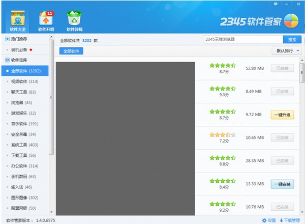 2345軟件管家是一個(gè)集軟件下載、安裝、卸載、升級(jí)等功能于一體的軟件管理工具。它由2345公司開(kāi)發(fā),旨在為用戶(hù)提供便捷、安全、高效的軟件管理服務(wù)。在2345軟件管家中,用戶(hù)可以輕松找到各種熱門(mén)軟件的下載鏈接。它支持各種軟件的分類(lèi)搜索,用戶(hù)可以根據(jù)自己的需求快速找到所需軟件,并通過(guò)它進(jìn)行下載安裝。軟件管家還提供了軟件的詳細(xì)介紹、評(píng)分、用戶(hù)評(píng)論等信息,幫助用戶(hù)選擇適合自己的軟件。軟件管家還具備軟件的安裝和卸載功能。用戶(hù)可以通過(guò)軟件管家來(lái)安裝下載好的軟件,它會(huì)自動(dòng)完成安裝過(guò)程中的各種設(shè)置,并確保安裝過(guò)程的安全性。對(duì)于不需要的軟件,用戶(hù)可以在軟件管家中進(jìn)行卸載操作,它能夠完全清理軟件在系統(tǒng)中的相關(guān)文件和注冊(cè)表信息,確保徹底的卸載。除了下載和安裝,軟件管家還提供軟件的升級(jí)功能。它會(huì)自動(dòng)檢測(cè)用戶(hù)計(jì)算機(jī)中已安裝軟件的最新版本,并提供升級(jí)的選項(xiàng)。用戶(hù)只需點(diǎn)擊一下,軟件管家會(huì)自動(dòng)完成軟件的升級(jí)過(guò)程,確保用戶(hù)始終使用最新、最穩(wěn)定的版本。