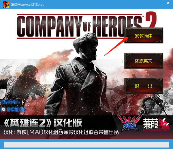 2、雙擊打開(kāi)Company.Of.Heroes.2.CHS.PATCH.蒹葭V1.2-ALI213.exe進(jìn)行安裝;