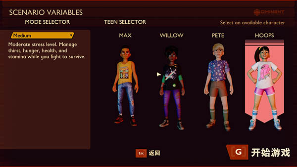 7、游戲中為玩家提供了4個(gè)游戲角色,玩家可以自主選擇