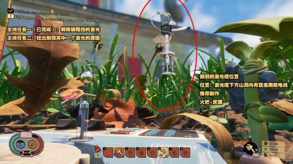 前往不穩(wěn)定激光的光束塔下方 擊敗干擾光束塔線(xiàn)路的昆蟲(chóng)
