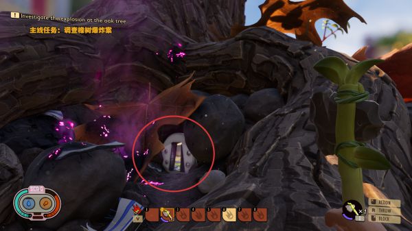 擋住激光的葉子需要用斧頭砍掉即可完成