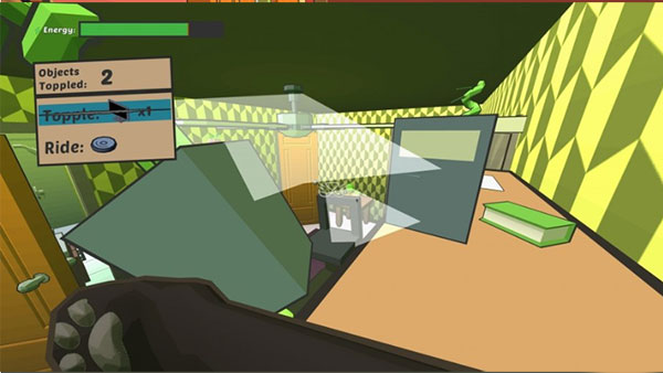 但進(jìn)入VR之中情況就有所變化了,因?yàn)閂R的特殊性,你無法再安穩(wěn)的坐在椅子上,簡單的動(dòng)動(dòng)手指就能大搞破壞了?,F(xiàn)在你需要彎下腰來與雜物保持同樣水平,以便能夠掃到他們,并且加大浸入感,如有必要就趴下來吧。并且最主要的是,你揮爪掃飛物體的動(dòng)作,由簡單的按下一個(gè)按鍵變?yōu)榱诵枰獡]動(dòng)手柄。這游戲玩起來是什么場景就讓大家自行腦補(bǔ)了……