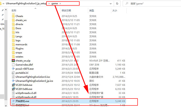 1、在本站下載奧特曼格斗進(jìn)化3日文版壓縮包后解壓打開,首選運(yùn)行游戲的解壓程序
