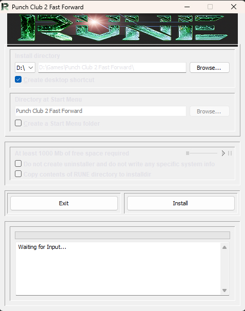 3、Install Directory為游戲安裝目錄,Directory Start Menu為開始菜單,取消勾選即可不創(chuàng)建開始菜單內(nèi)圖標(biāo),然后點(diǎn)擊下方的Install選項(xiàng)即可開始安裝游戲