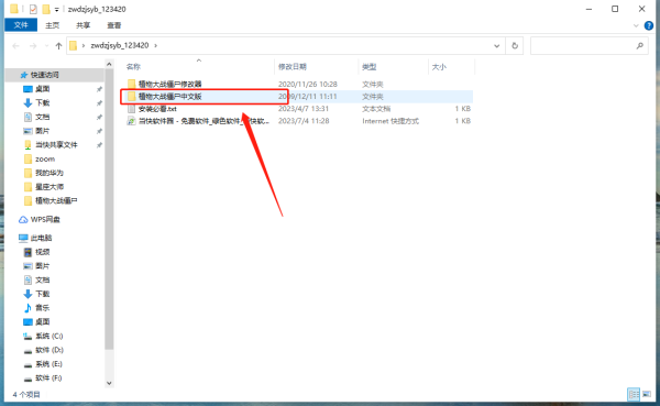 2、進入解壓好的文件夾,雙擊“植物大戰(zhàn)僵尸中文版”