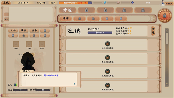 《修仙立志傳》是一款非常好玩且有趣的修仙模擬游戲,通過(guò)簡(jiǎn)約清新的繪畫(huà)風(fēng)格、國(guó)風(fēng)的服裝設(shè)計(jì)和輕柔的背景音樂(lè),為玩家?guī)?lái)了全新的修仙之旅??靵?lái)加入這個(gè)充滿魅力和神秘的修仙世界,成為真正的修仙者吧!