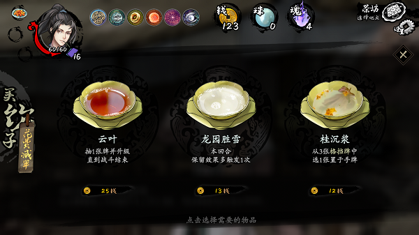 茶坊:可購買飲子,在戰(zhàn)斗開始時(shí)使用,只在本盤有效