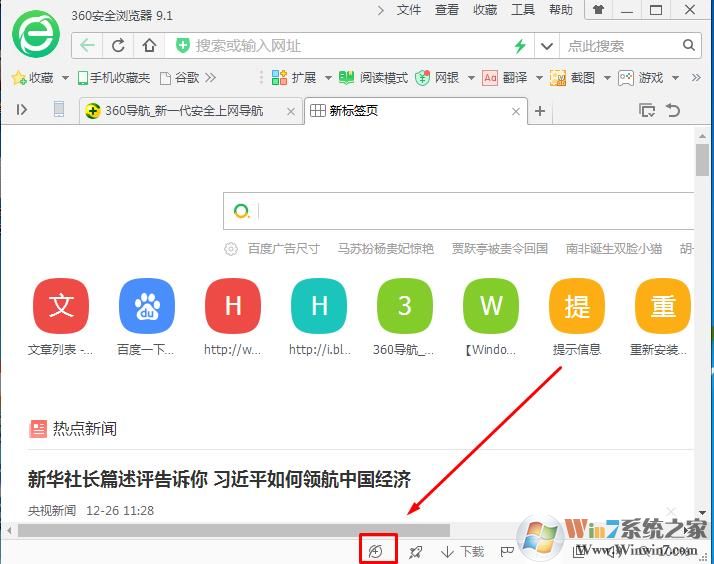 如果你已經(jīng)安裝了360瀏覽器,則可以在狀態(tài)欄中打開,打開位置如下圖