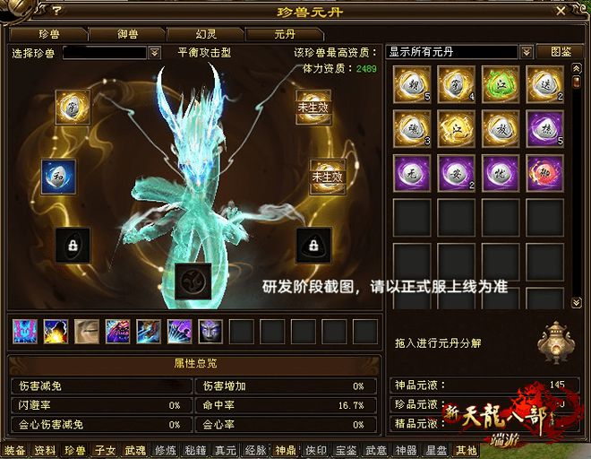 除此之外,少俠們還可以在護(hù)體和制勝元丹中,根據(jù)不同場(chǎng)景和珍獸技能來(lái)選擇不同的搭配組合,加強(qiáng)珍獸的技能效果。目前,元丹系統(tǒng)已上線龍門和龍園測(cè)試服,后續(xù)也會(huì)繼續(xù)收集大家意見(jiàn)進(jìn)行調(diào)優(yōu)。