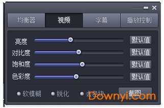 5、視頻按鈕下面,包含有影片的亮度,對比度,飽和度,色彩度,還有銳化,模糊,截圖等控制。