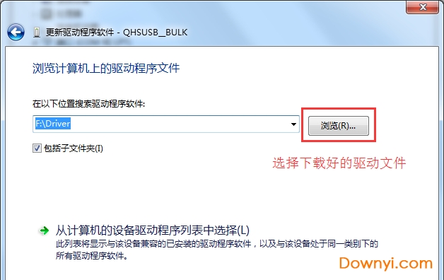 選擇下載好的驅(qū)動文件,點擊瀏覽,如下圖: