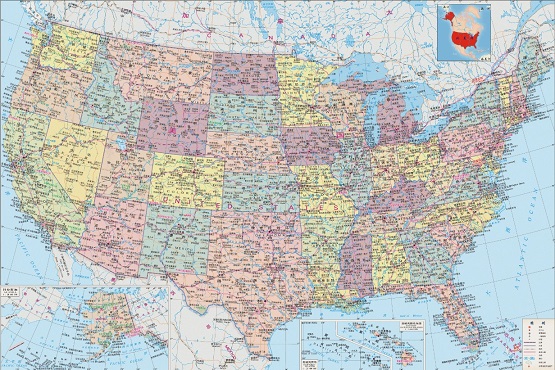 美國地圖是美國國土的圖形表示,它包含了50個州、華盛頓特區(qū)以及其他領土和屬地。美國地圖一般按照州的邊界來繪制,每個州都有獨特的形狀和大小。美國地圖的東部和西部分別被大西洋和太平洋兩大洋所環(huán)繞。美國的主要山脈包括落基山脈、阿巴拉契亞山脈和喀斯喀特山脈。美國還擁有五大湖,它們是偉大湖、伊利湖、密歇根湖、休倫湖和安大略湖。美國地圖上的主要城市包括紐約、洛杉磯、芝加哥、休斯頓、費城和邁阿密等。這些城市是美國的經(jīng)濟和文化中心,吸引了大量的人口和游客。美國地圖上還標示了一些重要的地標和景點,如自由女神像、大峽谷、黃石國家公園和華盛頓特區(qū)等。小編為用戶帶來的最新、高清、中英文美國地圖圖集下載,采用4658X3254分辨率,全中文標注,有阿拉斯加/夏威夷小圖。非常方便有此需求的用戶,歡迎下載。