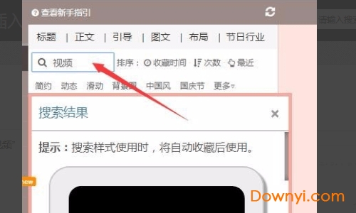 2、打開135編輯器,接著在左邊的搜索框中輸入“視頻”,選擇一個(gè)自己喜歡的樣式。