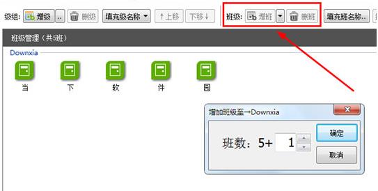 4、接著就可以添加并設(shè)置班級啦,直接點擊紅框標(biāo)注內(nèi)的增班,輸入具體的增班數(shù)量,接著點擊班級更班級名稱,由此也就完成了設(shè)置班級的全部內(nèi)容,如下圖所示: