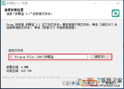 3、選擇護眼寶的安裝文件夾,這里建議將文件安裝在D盤,點擊“安裝”即可;