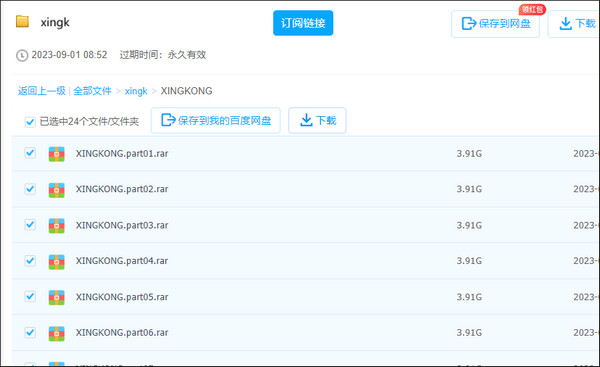 3、打開網(wǎng)盤鏈接后會自動跳轉(zhuǎn)到資源分享頁面,【星空免安裝版】的所有文件都在這里,點擊全選下載