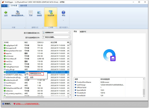 6、之后,點(diǎn)擊其中的文件,它會(huì)在右邊為你預(yù)覽恢復(fù)文件,然后點(diǎn)擊選中文件鼠標(biāo)左鍵,選擇保存選定的文件;