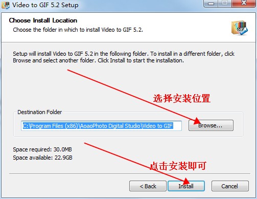 4、選擇安裝位置進行安裝,點擊安裝即可